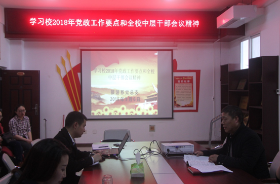 樊书记首先从深入学习学校2018年党政工作要点和全校中层干部会议精神的背景、意义等进行了简要的阐述。紧接着,樊书记针对祝校长的讲话精神和许琰书记的讲话精神进行了传达,传达了学校的主要任务是:“全面贯彻习近平新时代中国特色社会主义思想和党的十九大精神,安排部署2018年重点工作,以国家级优质校、特高校建设为抓手,推进全面从严治党向纵深发展,落实立德树人根本任务,深化教育教学改革,推进“质量年”建设,推动学校各项事业发展实现新跨越”。然后樊书记对全校中层干部会议精神结合会议材料,一条一条的进行了详细的解读。最后,樊书记结合旅游系的实际情况,要求旅游系广大教工党员,严格按照学校的总体任务要求,详细规划部署旅游系的相关任务,以认真、负责的精神为黄河水院的圆梦工程贡献力量。