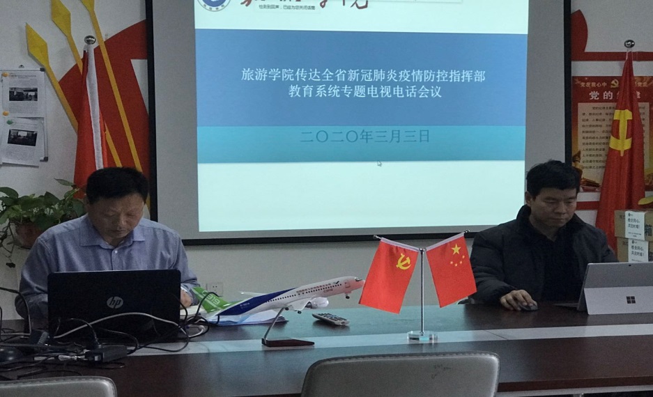 党总支书记刘岩向全体教职工传达了2月27日,由联系校领导杨校长到旅游学院召开班子成员会议传达全省新冠肺炎疫情防控指挥部教育系统专题电视电话会议精神。会议要求:一、充分认识高校疫情防控工作的复杂性和极端重要性,切实扛稳扛牢政治责任;二、抓紧、抓实、抓细校内防控工作,对师生员工健康状况进行全面排查,有针对性地做好返校前后的健康教育,深入研究有效降低校内人员聚集的具体举措,划小管理单元,制定周密应急预案;三、统筹疫情防控和高校发展,把疫情防控当作生动教材,因势利导开展和改进思想政治工作,持续深化教育改革,着力推动高校高质量发展。刘书记特别强调旅游学院要在疫情防控期间切实负起责任。为此,旅游学院成立了以党总支书记刘岩、院长焦红强为组长的疫情防控领导小组,各分管部门制定相应的防控预案。刘书记指出,在疫情防控阶段不仅要做好防控工作,还要抓好改革和发展,结合实际修改2020年工作计划,聚焦双高校建设方案、旅游学院专业群建设以及产业学院建设等重点问题开展更为细致的修订及研讨工作。疫情期间,各任课老师要组织好延时开学期间的网上教学,提升信息化教学质量,做到网上教学活动有序、高效开展,确保教学质量。