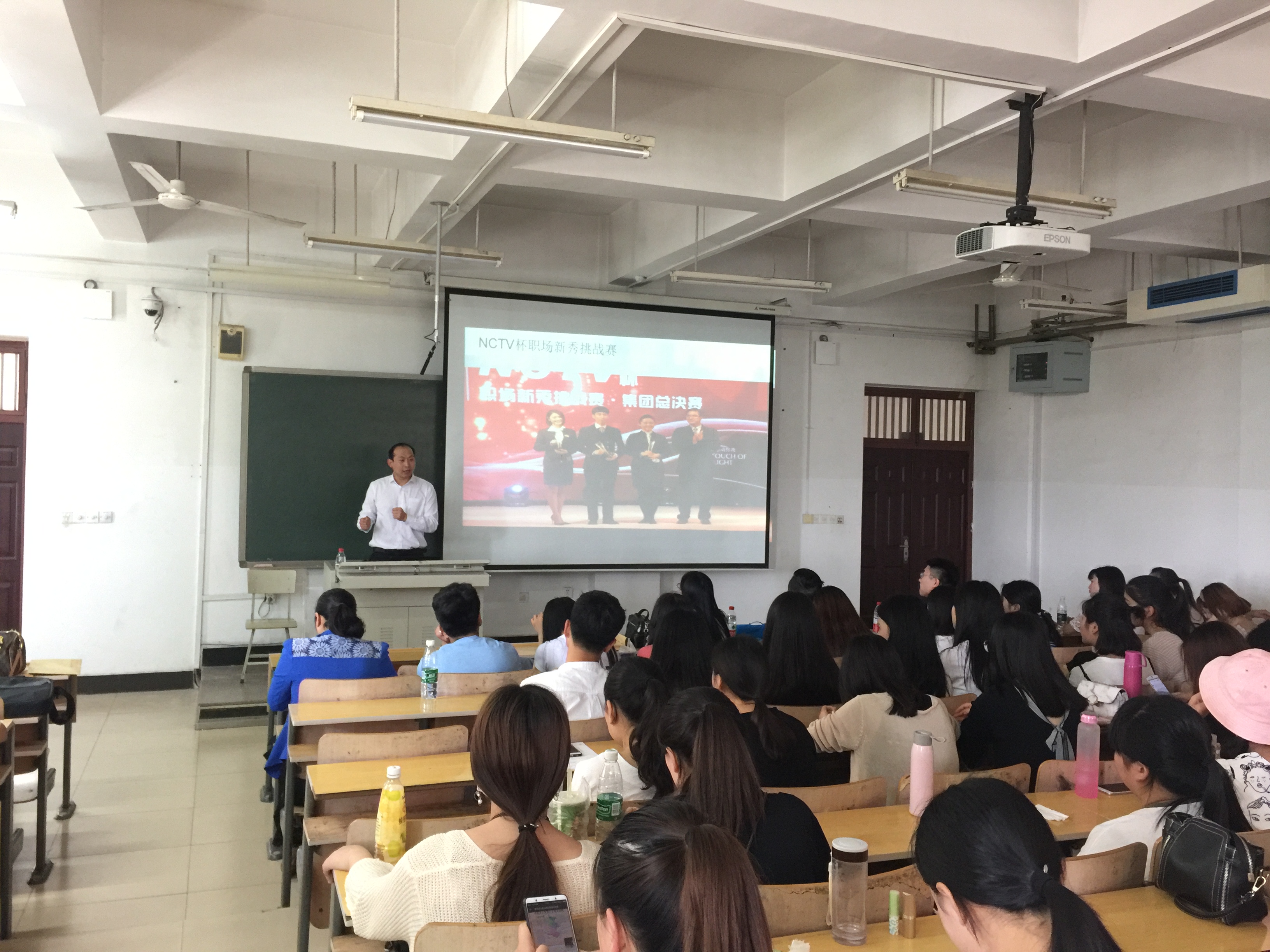 2018年5月28日,北京好苑、杭州开元、厦门艾美、郑州建业艾美、郑州美盛喜来登酒店五家五星级酒店来我校2号教学楼JX2302,针对2016级酒店管理专业学生,进行顶岗实习及就业的专题宣讲。