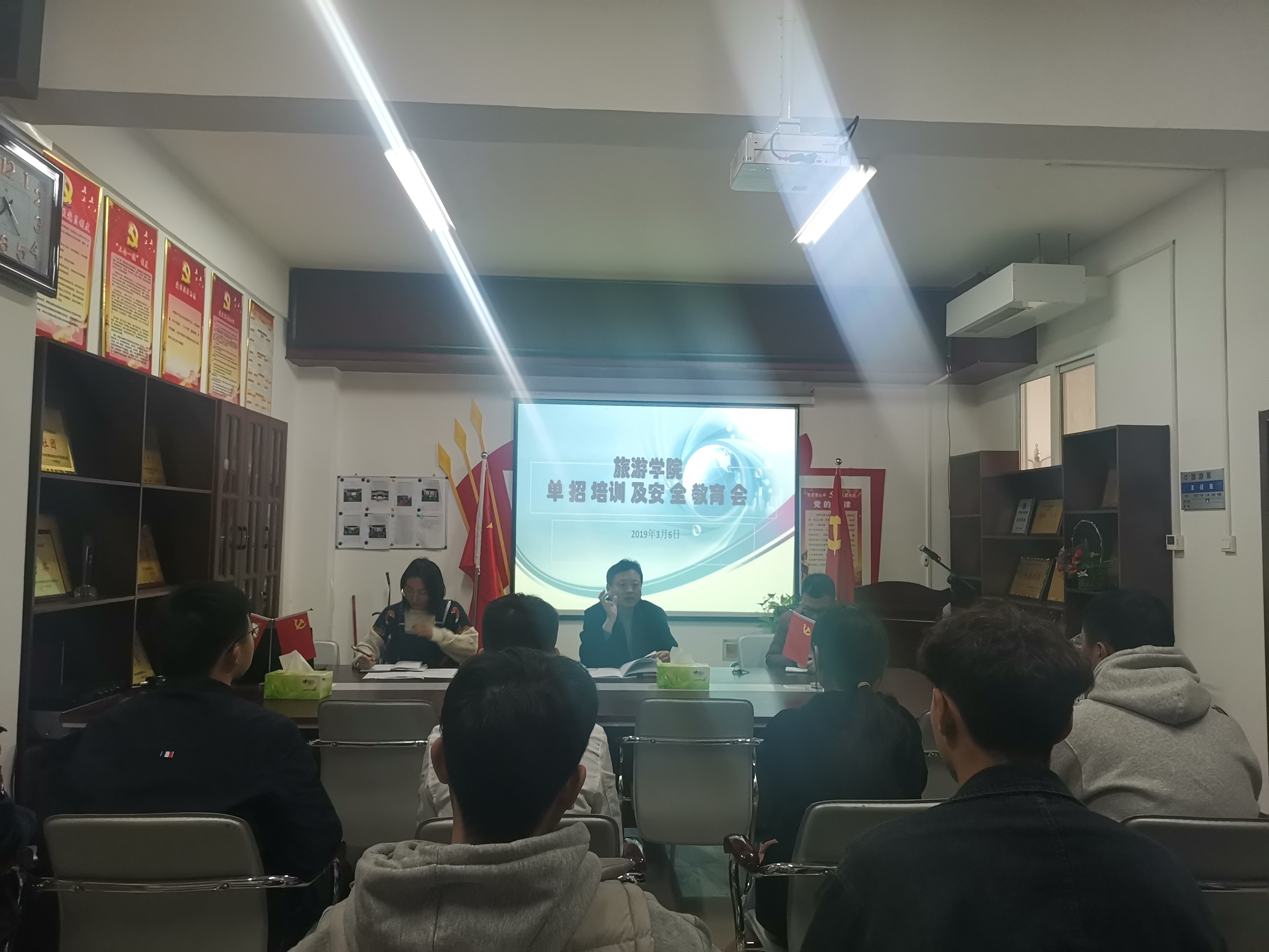 根据《关于印发< 黄河水利职业技术学院2019年单独考试招生工作实施方案>的通知》(黄院﹝2019﹞22号)及《旅游学院2019年3月单招宣传方案》等相关文件内容要求,为进一步保障本年度单招宣传工作的顺利进行,实现单招预期宣传效果,2019年3月6日旅游学院在SY5204 召开了旅游学院单招、培训及安全教育会议。旅游学院工学结合办韩欢乐老师主持了本次会议,旅游学院党总支书记刘岩、旅游教研室代表张宾宾老师及来自各学院的数十名单招宣传负责人出席了本次会议。