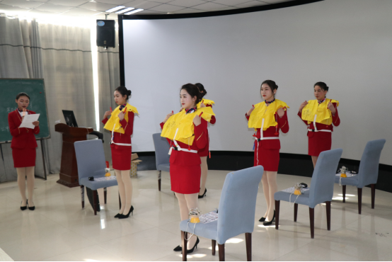 2018级空乘专业学生分组进行客舱安全演示实操训练