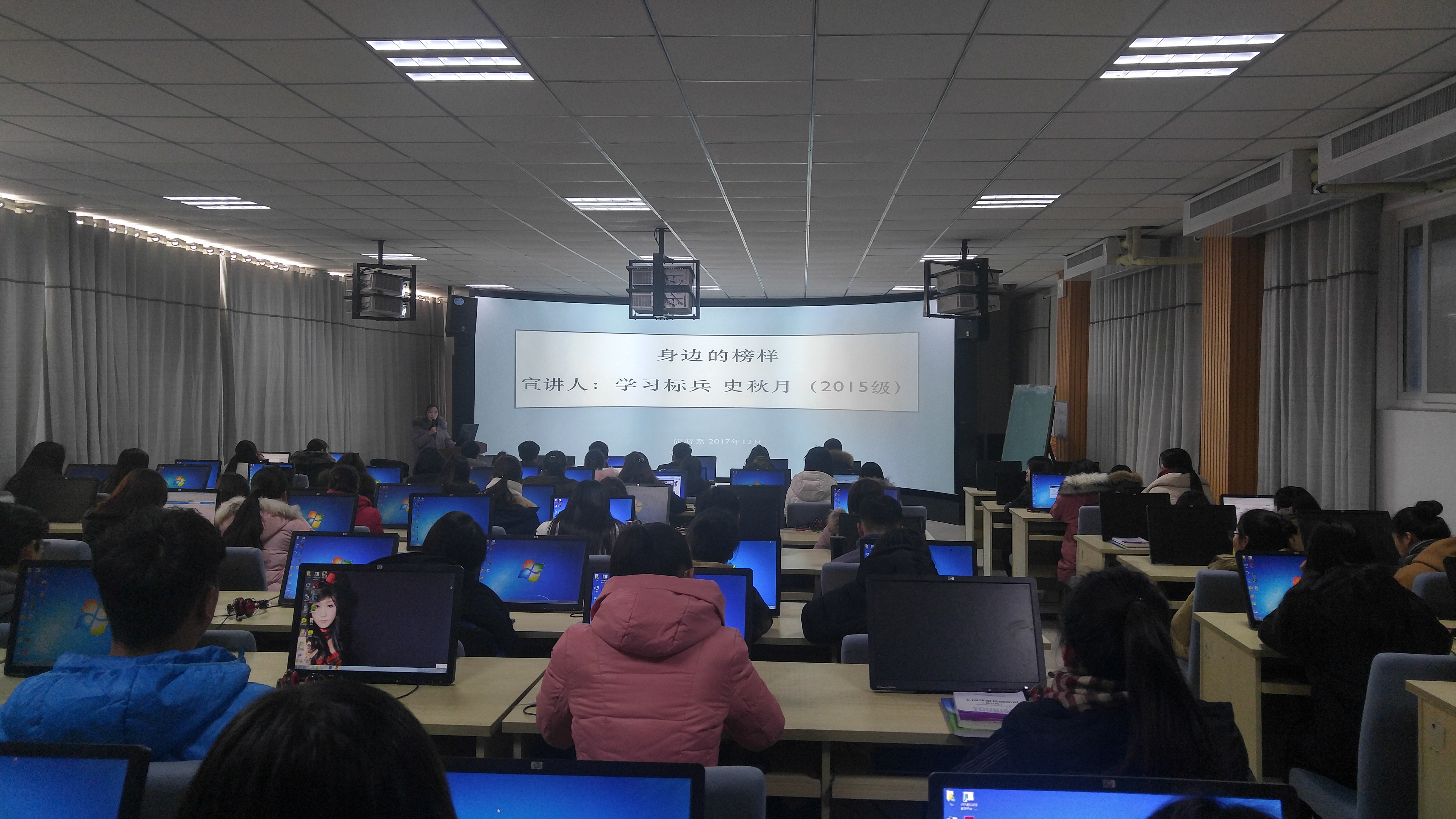 为了更好地宣传院系先进典型,凝聚榜样的力量,2017年12月13日中午1点我系在SY5102举行了一年一度的“身边的榜样”宣讲会。本次活动邀请了国家奖学金获得者——15级旅游管理专业的史秋月同学做了此次宣讲。旅游系各年级辅导员老师和各年级学生代表参加了本次活动。