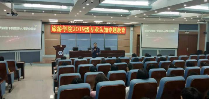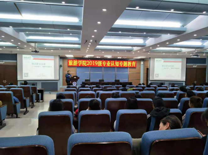 智慧旅游知识的普及专题讲座,由旅游管理教研室主任张宾宾老师主持。第一场,万豪国际集团河南区域校企合作负责人王阳老师做了“知行合一,越努力越幸运”的专题讲座。王老师主要以智慧旅游为切入点,围绕酒店行业发展、专业优势、就业前景、未来职业发展、成长建议等五个方面的关系进行了分享。通过王老师深入浅出、幽默风趣的讲解、有效的课堂互动,激发了广大同学们对酒店行业的学习热情和对未来职业发展的信心。第二场,金棕榈教育科技有限公司总经理陈亮,主要从“新时代、新技术、新模式”、“旅游行业的全新变革——智能旅行服务”、“旅游新业态、呼唤新人才”三个方面,为同学们全面普及了智慧旅游大数据与当代大学生,尤其是旅游管理专业学生的密切关系。通过陈老师生动形象的讲解,使同学们对大数据实训室、智慧旅游有了较清晰的认识。