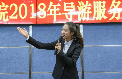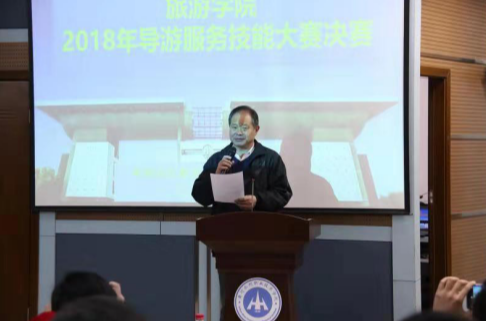 主持人宣布旅游学院2018年导游技能大赛正式开始
