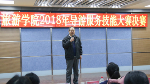 旅游学院书记刘岩首先致词,代表旅游学院感谢领导、专家、来宾莅临比赛现场,指导比赛工作。他指出每年一度的导游技能服务大赛,是本着“讲道德、修技能、赛服务”指导原则,检验我们的人才培养的一项重要的专业技能大赛,通过技术练兵的窗口,旨在提高旅游专业学生的就业档次和质量,展现学生的专业素质和才艺风采。为学生未来的梦想插上翅膀,使他们飞的更高、更远、更长。希望参赛学生发挥水平,彰显风采。最后,刘书记宣布旅游学院导游服务技能大赛决赛正式开始。