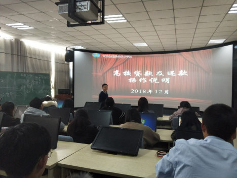 为进一步加大学生资助政策的宣传,使学生了解国家学生资助政策。旅游学院分团委于12月18日下午1点在SY5102召开“高校贷款还款说明会”, 16级辅导员张宾宾、17级辅导员李峰和18级辅导员韩欢乐参加此次宣讲会。会上,院系资助助理和清桢同学分别向17级、18级贷款学生介绍了助学贷款的种类及申请条件。接着,资助老师李峰介绍了国家开发银行助学贷款的还款事项以及系统操作说明,向申请高校贷款的学生示范申请提前还款的系统操作流程,并鼓励同学们积极偿还助学贷款。会后学生们表示对国家的奖助政策有了更进一步的了解,并承诺一定会按期偿还助学贷款。