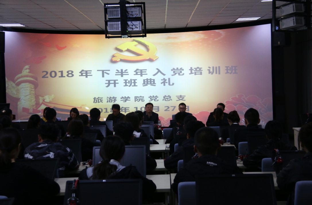 2018年10月27日上午8:30,黄河水院旅游学院第43期入党积极分子培训班在SY5102隆重开班。党总支书记刘岩、副书记徐永红应邀参加参加此次党课开班典礼,学生党支部书记张宾宾、组织委员李峰、宣传委员牛海燕,2018级辅导员韩欢乐及学生党支部预备党员、发展对象和本期的入党积极分子参加了此次开班典礼。