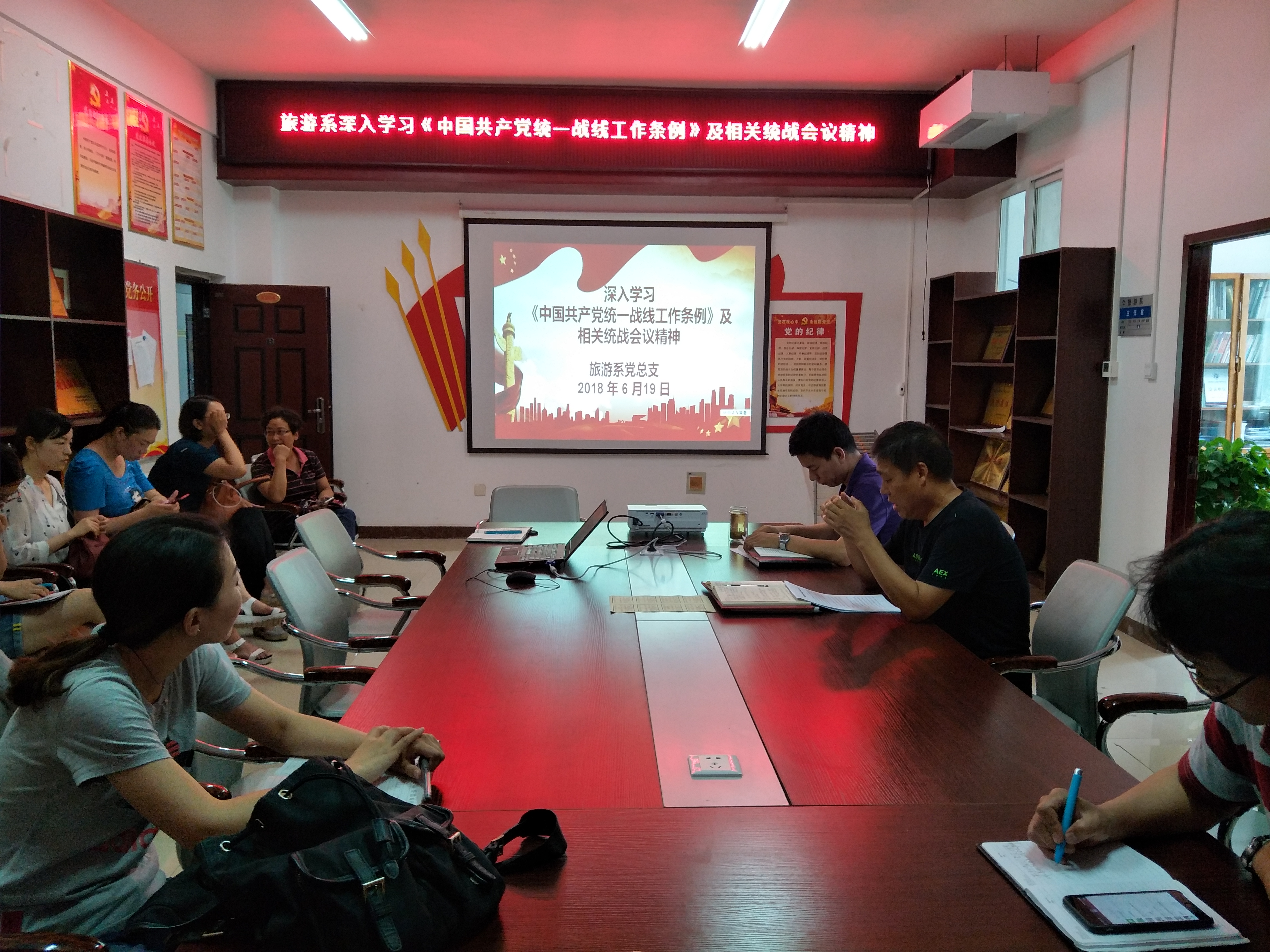 通过集中学习《中国共产党统一战线工作条例(试行)》、全国全省统战工作会议精神,进一步增强了旅游系广大教工党员的团结意识和大局意识,自觉维护统一战线,践行统一战线的相关会议精神成为旅游系广大教工党员的共识。