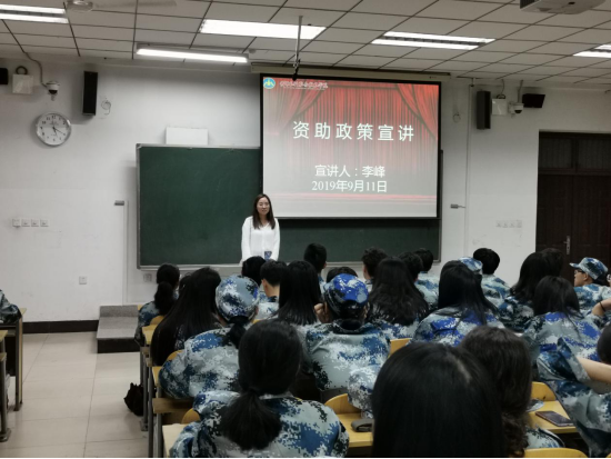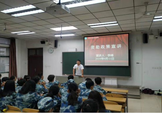 资助老师李峰向2019级新生介绍了我校奖助学金的申请程序、办理条件以及高校资助在线系统操作说明,并向学生们说明了义工的职责和义务,资助助理胡星兆向新生阐述资助系统登录的步骤和应当注意的问题。