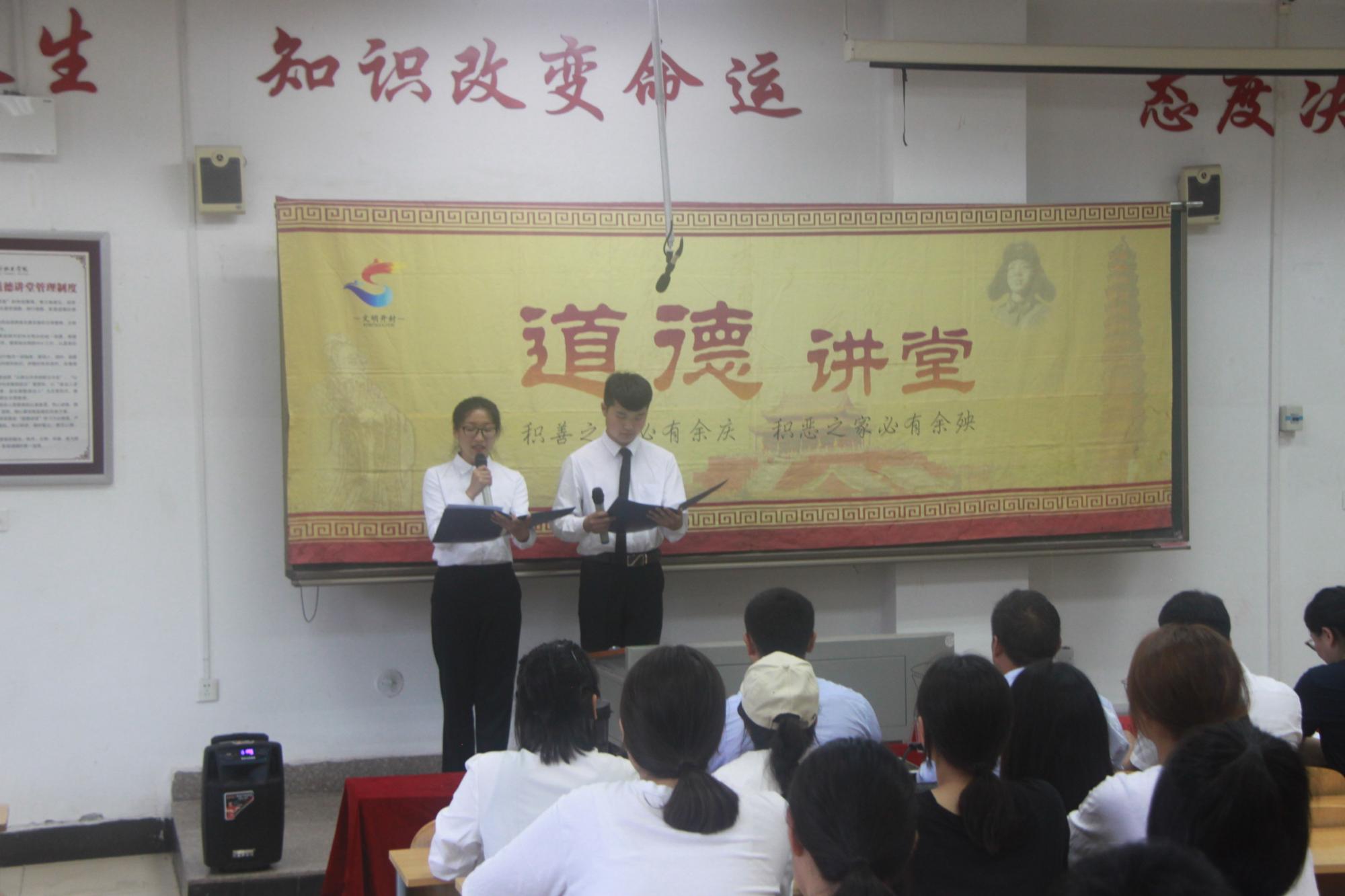 此次道德讲堂活动充分结合旅游系专业特色,创新多样化宣讲形式,通过“八个一”,即“唱一首歌曲”、“看一部短片”、“学一点儿礼仪”、“诵一段经典”、“讲一个故事”、“作一个承诺”、“作一番点评”、“送一份吉祥”的活动使师生易于参与、乐于参与,从而更好的实现道德讲堂的作用。