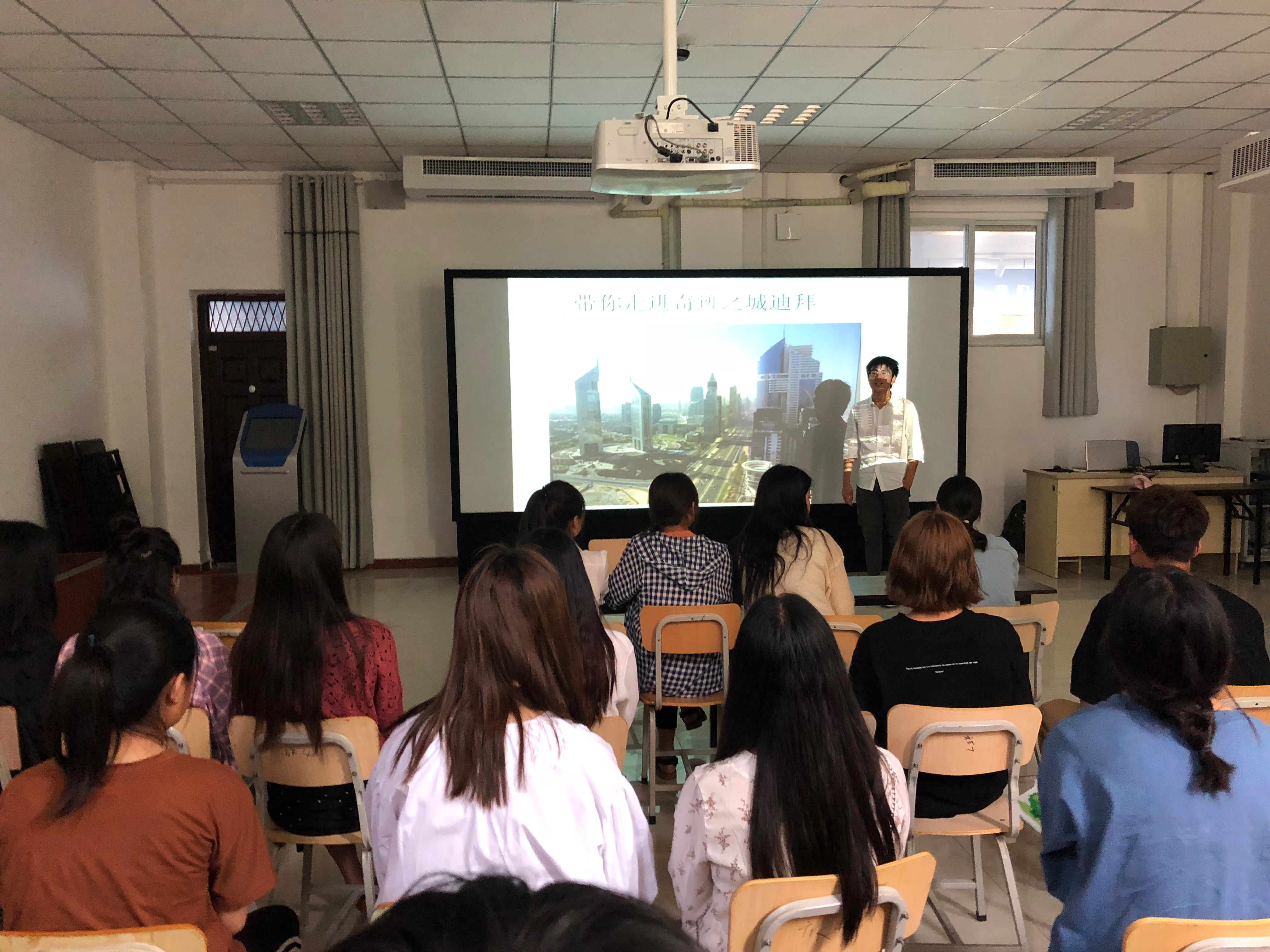 2018年5月22日下午,旅游系2015级学生李源在SY5101为2017级学生进行海外实习的经验分享会。