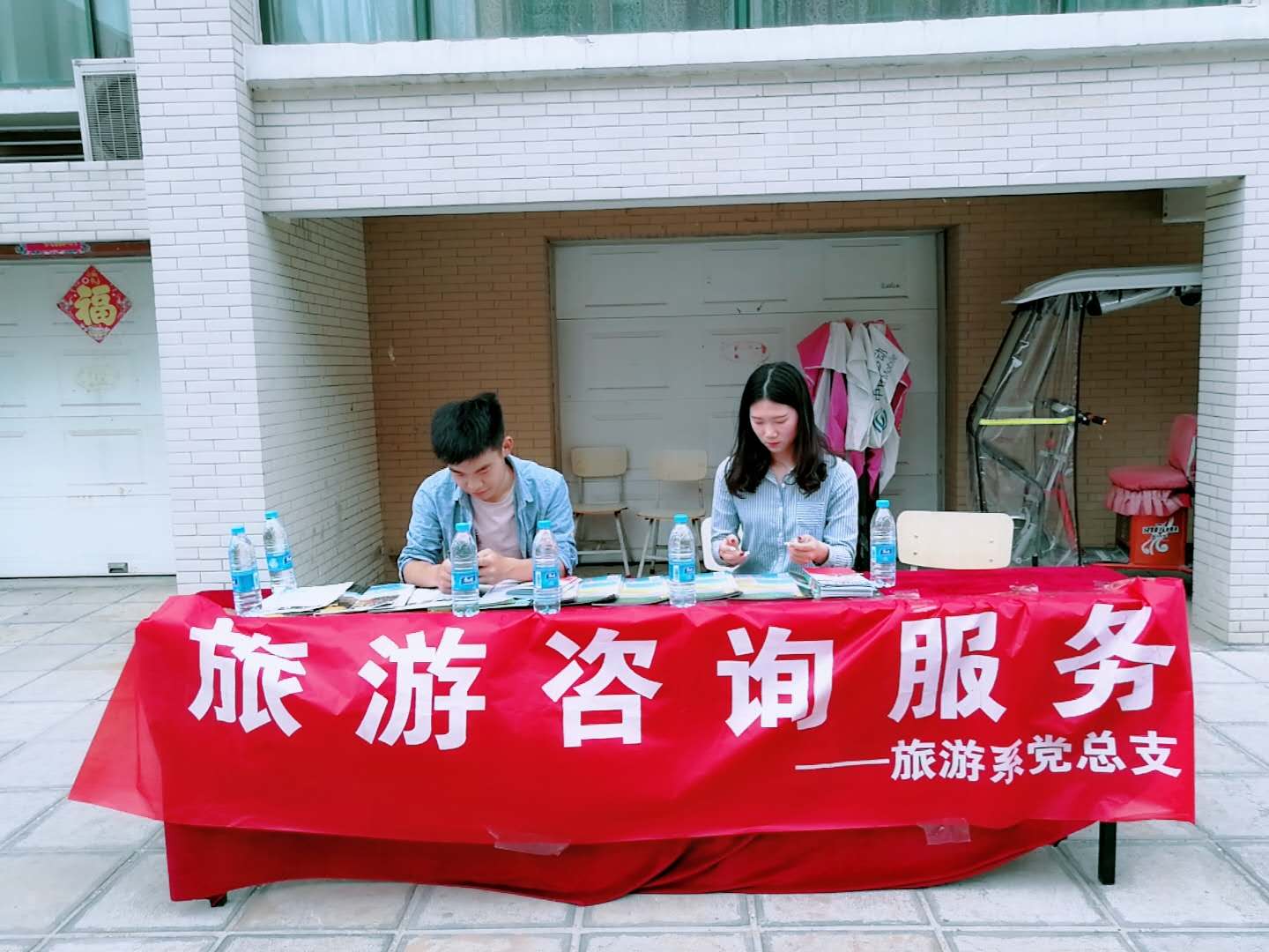 此次活动,由旅游系党总支统一策划、实施,结合旅游系旅游管理专业的特点,旅游系广大师生为广大教职工免费提供相关的旅游咨询服务。通过宣讲旅游知识,为广大教职工规划旅游线路,帮助广大教工解决旅游疑难问题等来更好的宣传旅游系,服务社会、奉献社会。