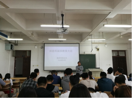 为了加强诚信教育,帮助学生树立诚信意识,2018年5月,旅游系在4号教学楼召开诚信教育会,系党总支书记樊建科,2015级辅导员闫曾、2016级辅导员张宾宾和2017级辅导员李峰参加了诚信教育会。