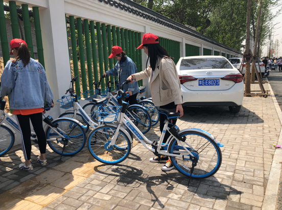 旅游系第43期党校培训学员在开封万岁山景区附近开展摆放共享单车活动