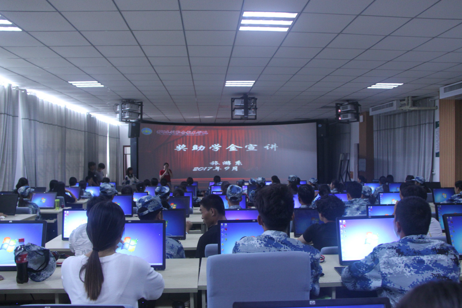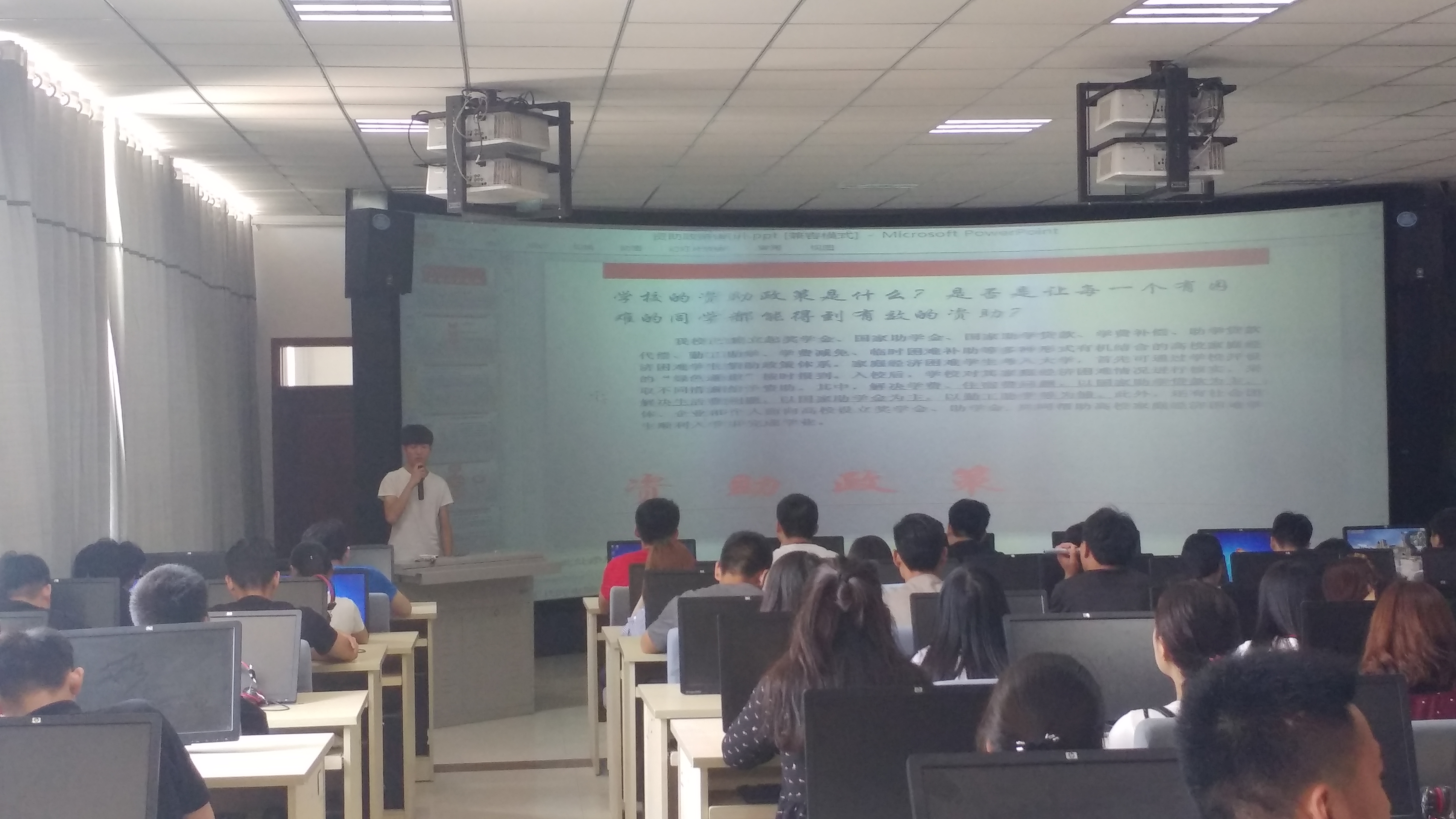 为贯彻落实学校学生资助管理中心相关要求,进一步做好资助宣传教育工作,推动新学期资助工作顺利进行,旅游系高度重视、精心组织,于8月底至9月初,针对16级和17级新生开展了资助政策宣讲“两节课”系列活动,旅游系辅导员卫聪聪、资助专业闫曾和资助助理马兴龙同学作为本次活动的主讲人。