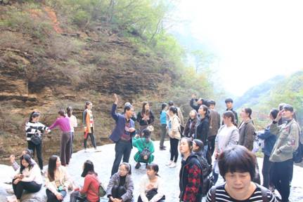 旅游系还组织了75名学生到焦作云台山景区进行了导游业务的现场实训教学。要求学生做好旅游线路规划、景区导游和讲解、应急事件处理和危机公关应对等工作,并由专业教师即时考核。