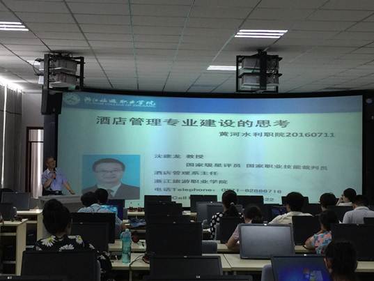国家级饭店星评员、浙江旅游职业学院酒店管理系主任沈建龙教授给学员做讲座