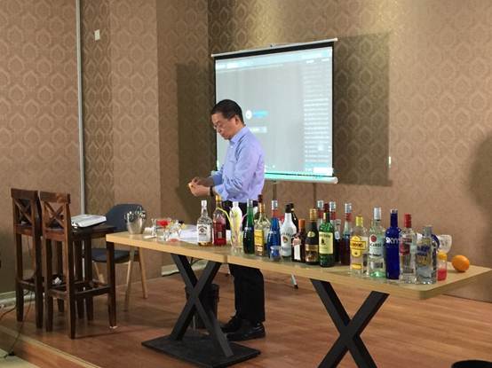 河南省酒店服务技能大赛西餐项目裁判长赵敏教授学员调酒技巧