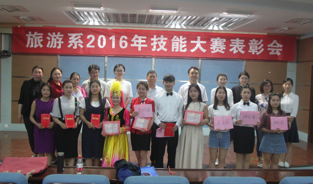 2016年5月20日晚19:00,旅游系在3号实训楼3楼报告厅举办2016年技能大赛表彰大会。系党总支书记樊建科、副主任余楠及旅游系的专业老师受邀出席了本次晚会。