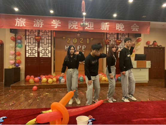2020年12月26日晚上17:30,旅游学院迎新元旦晚会在中餐实训室隆重举行。黄河水院学生工作部部长、学生处长刘许亮、旅游学院党总支书记刘 岩、院长焦红强、党总支副书记徐永红、副院长余 楠、全体科级干部及部分专业教师与在校2020级学生共同观看了本场晚会。