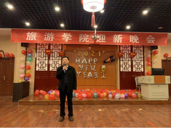 旅游学院党总支书记刘 岩首先代表旅游学院全体师生场的领导、老师及全体新生表示欢迎。同时感谢旅游学院全体师生一年来在校党委和行政的领导下履职尽责、团结一致、共克难关、圆满完成疫情防控下的教学、科研及管理工作忠实履行了高校教师“为党育人、为国育才”的政治要求。现场刘书记朗诵了毛主席诗词《七绝 呈父亲 》来纪念毛泽东诞辰127周年,勉励同学们学习伟人精神,发奋学习,知识报国。最后,刘书记预祝旅游学院元旦晚会圆满成功2021老师们事业蒸蒸日上,家庭幸福,学生们学业有成,健康快乐
