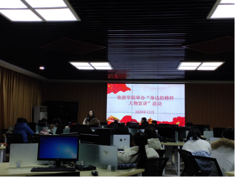 为了更好地宣传学院先进典型,凝聚榜样的力量,2020年12月21日中午13:00点我院在教学楼7510举行了一年一度的“身边的榜样”宣讲会。本次活动对省级优秀学生干部获得者-旅游管理1803班彭世海、学习标兵-2018级空中乘务1801班的韩嘉宁同学等事迹进行了讲解。旅游学院2019级旅游管理专业辅导员刘梦丽老师主持了本次会议,2020级学生代表参加了本次活动。