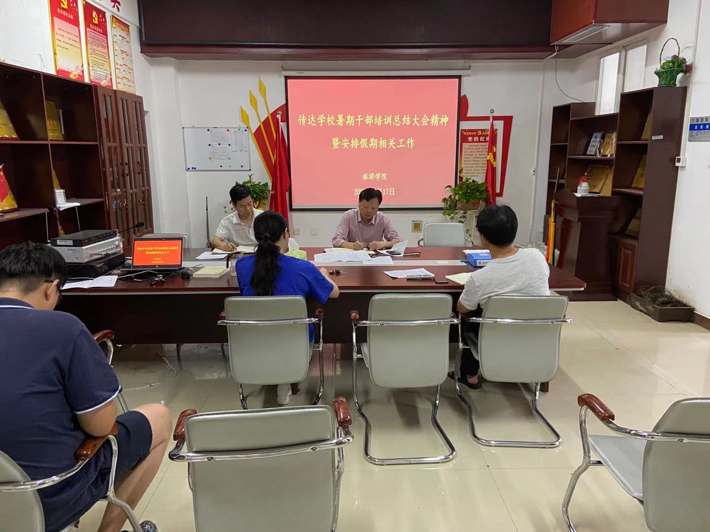 7月17日上午,旅游学院召开科级以上干部会议,传达学校暑期干部培训总结大会精神、安排假期相关工作,会议由院长焦红强主持,党总支书记刘岩、副书记徐永红、副院长余楠以及全体科级干部参加会议。