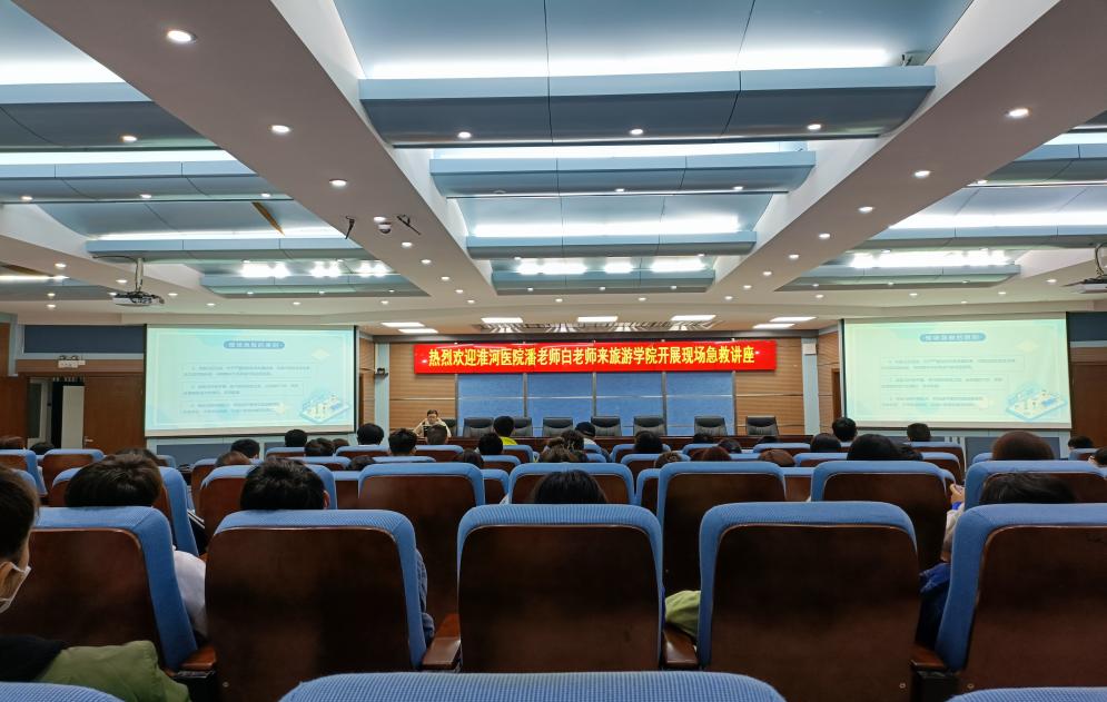 2021年10月20日,旅游学院邀请淮河医院急救科护士长潘老师、白老师为2020级学生开展现场急救培训讲座。