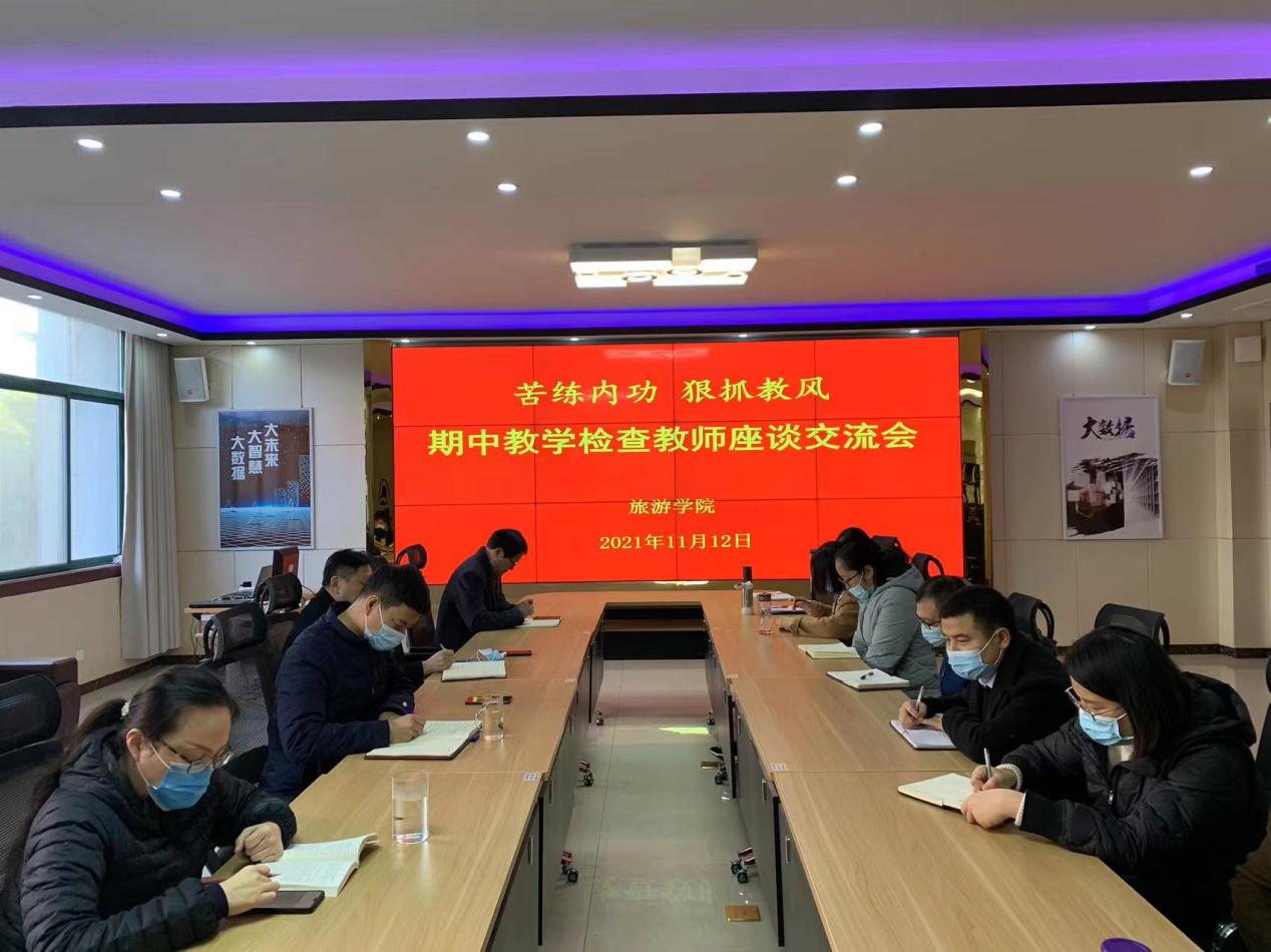 11月12日上午旅游学院在5201会议室开展以“苦练内功、狠抓教风”为主题的期中教学检查教师座谈交流会,推动解决理论教学和实践教学过程中遇到的各种问题。党总支书记刘岩、院长焦红强、副书记徐永红、副院长余楠以及各教研室教师代表参加会议。