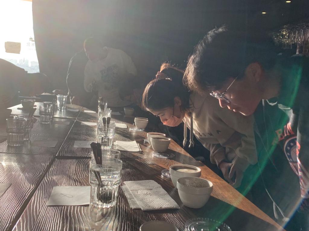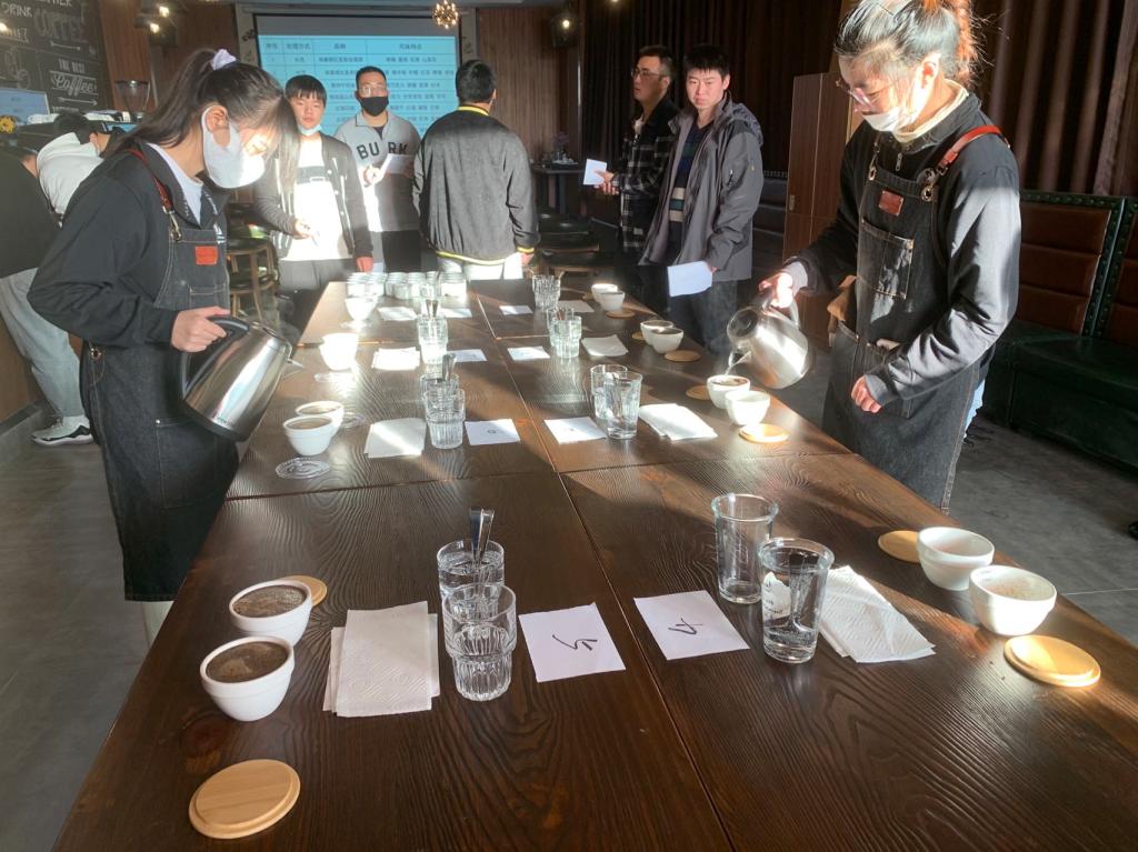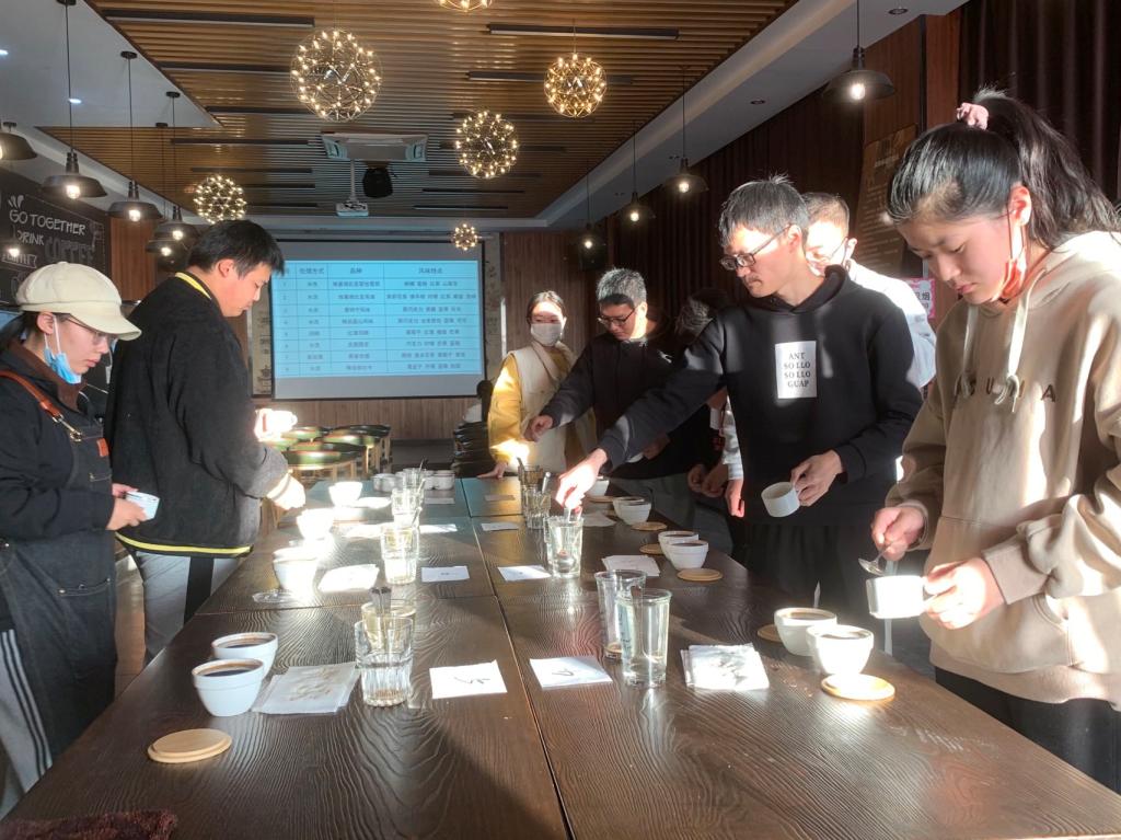为了让同学们深入了解和探索咖啡独特的味道,宋老师还带领同学们进行了专业杯测。通过8款不同产地、不同处理方式的咖啡豆,引导大家通过咖啡杯测的形式,以嗅觉、味觉、触觉等感官,体验咖啡的干香、湿香、风味、酸度、平衡感等特点。