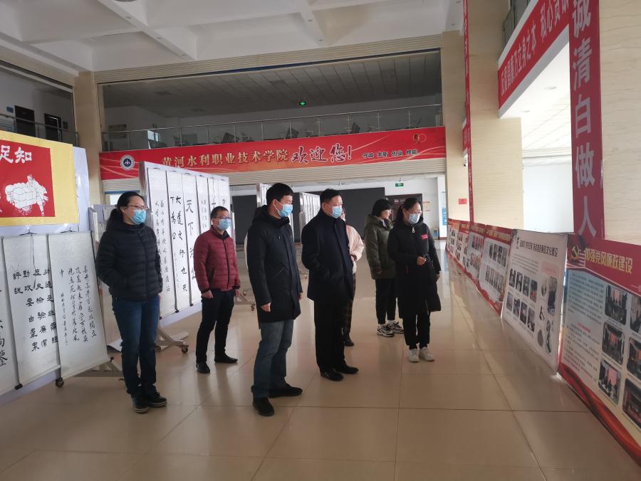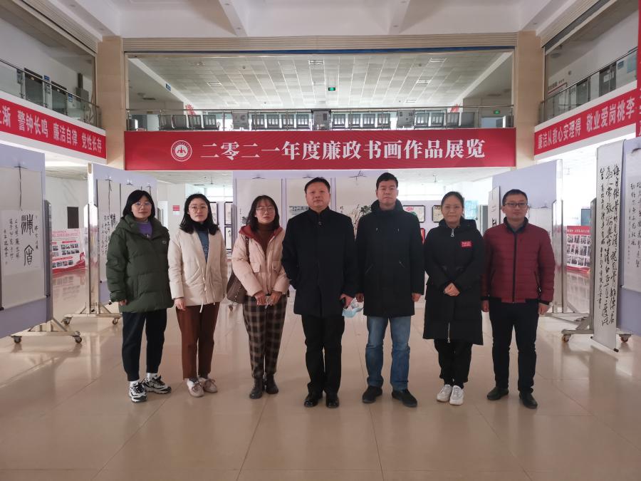 2021年12月31日上午,旅游学院党总支书记刘岩、院长焦红强带领旅游学院党总支成员和科级以上干部到大学生活动中心参观校纪委组织的廉政书法作品展览。