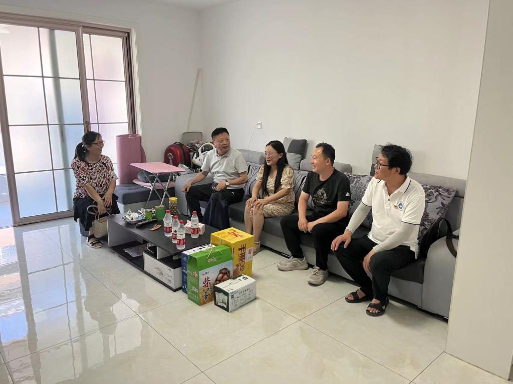 6月28日,由学院党总支书记刘岩、院长王振伟带队,党总支副书记徐永红、教职工支部书记王进、学生支部书记史晋组成慰问组一同前往学院老党员、困难党员、和优秀共产党员花菊香、刘梦丽、张忠良、尚晴家中,看望慰问新入职的学院教师,及时将学院的关怀传递给新同事们。