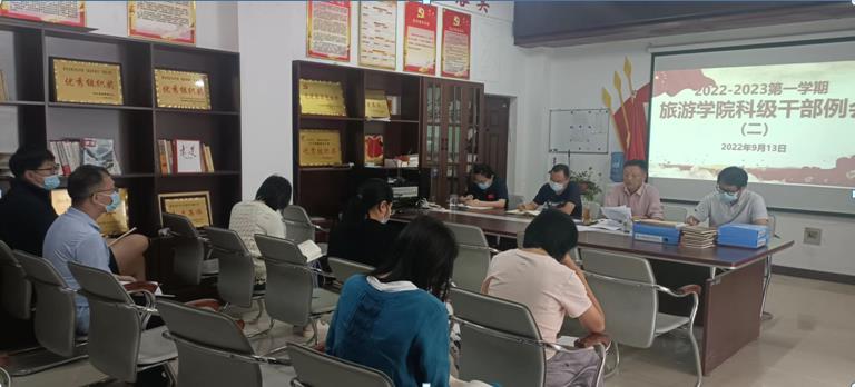 2022年9月13日,旅游学院党总支组织科级以上干部开展了廉洁自律学习活动。旅游学院党总支书记刘岩、院长王振伟、副书记徐永红、副院长余楠,全体科级干部、教研室主任和兼职纪检监察员周菲菲参与此次活动。
