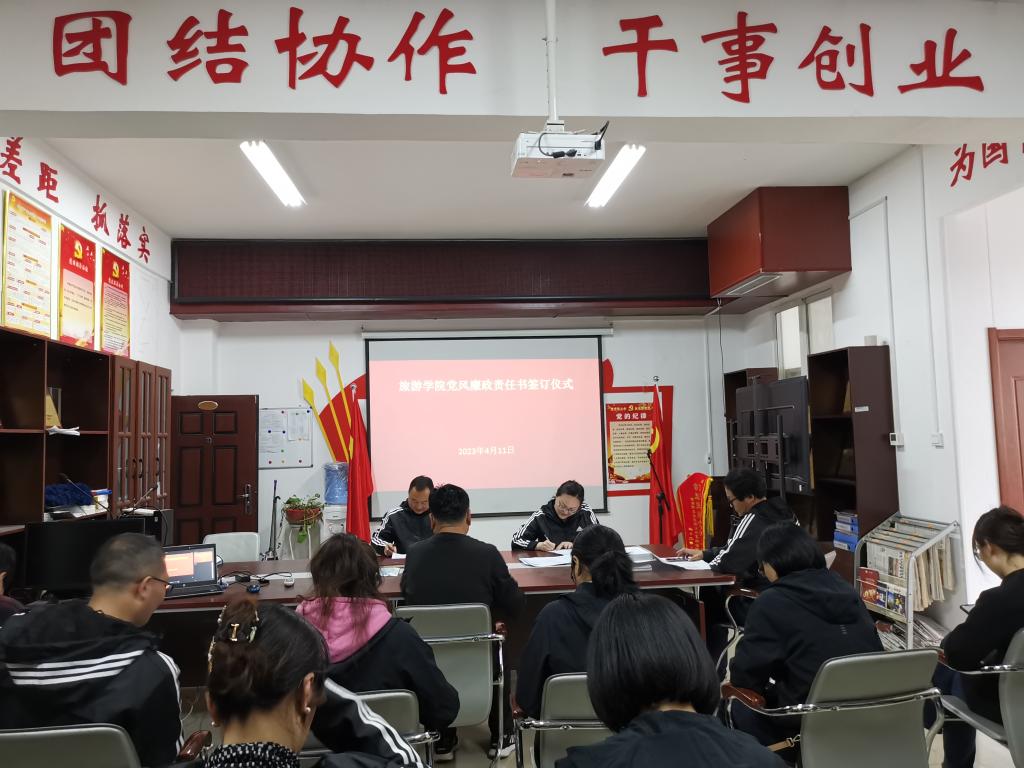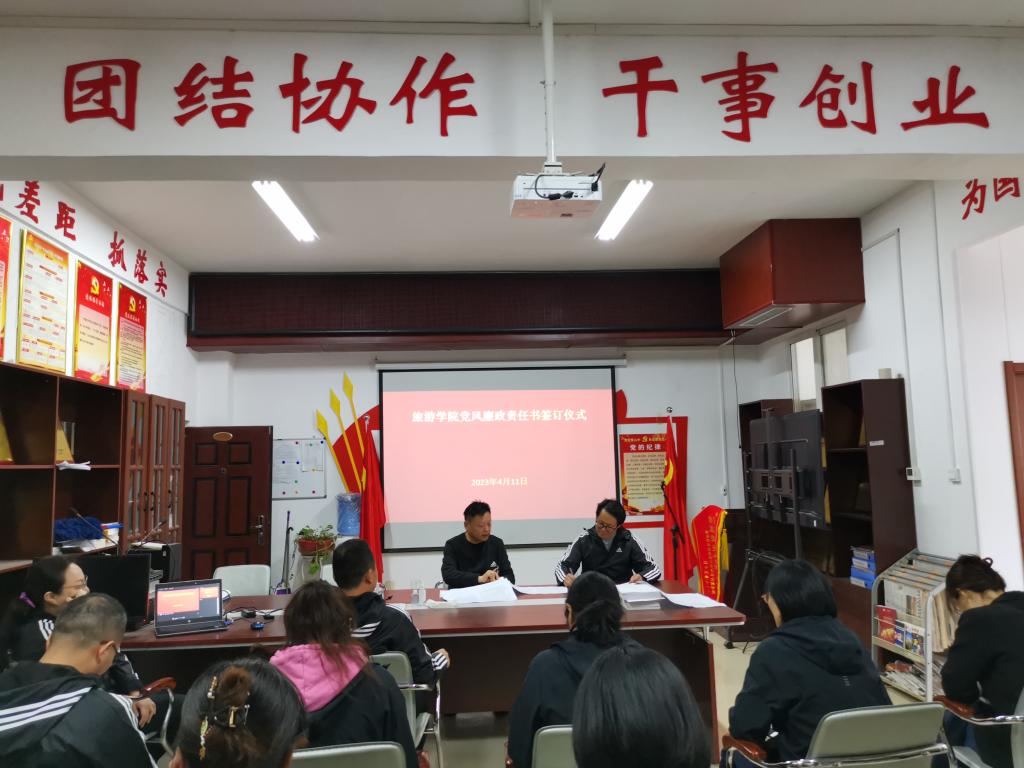 4月11日下午,旅游学院在党员活动室举行了2023年党风廉政建设责任书签字仪式。全体院领导和教职工参加了签字仪式。党总支书记刘岩主持了签字仪式。