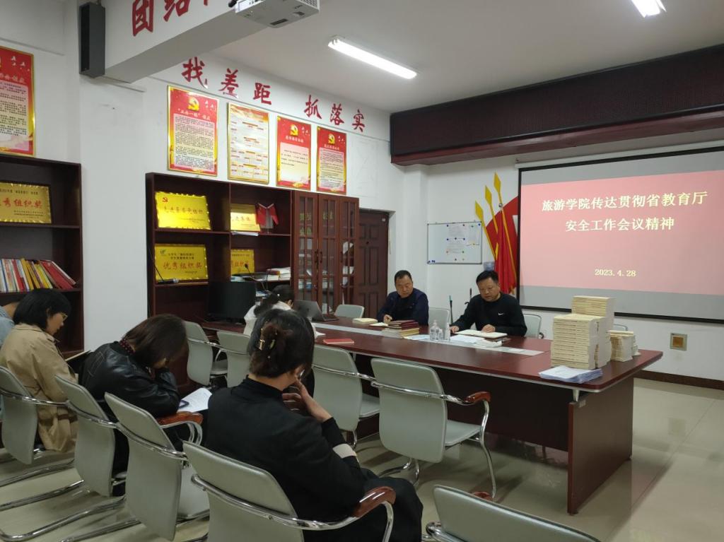 为落实五一期间师生安全问题,4月28日,旅游学院召开传达省教育厅关于五一期间安全工作会议精神会议。会议由院党总支书记刘岩组织召开,院长王振伟、科级以上干部及行政坐班人员参加本次会议。
