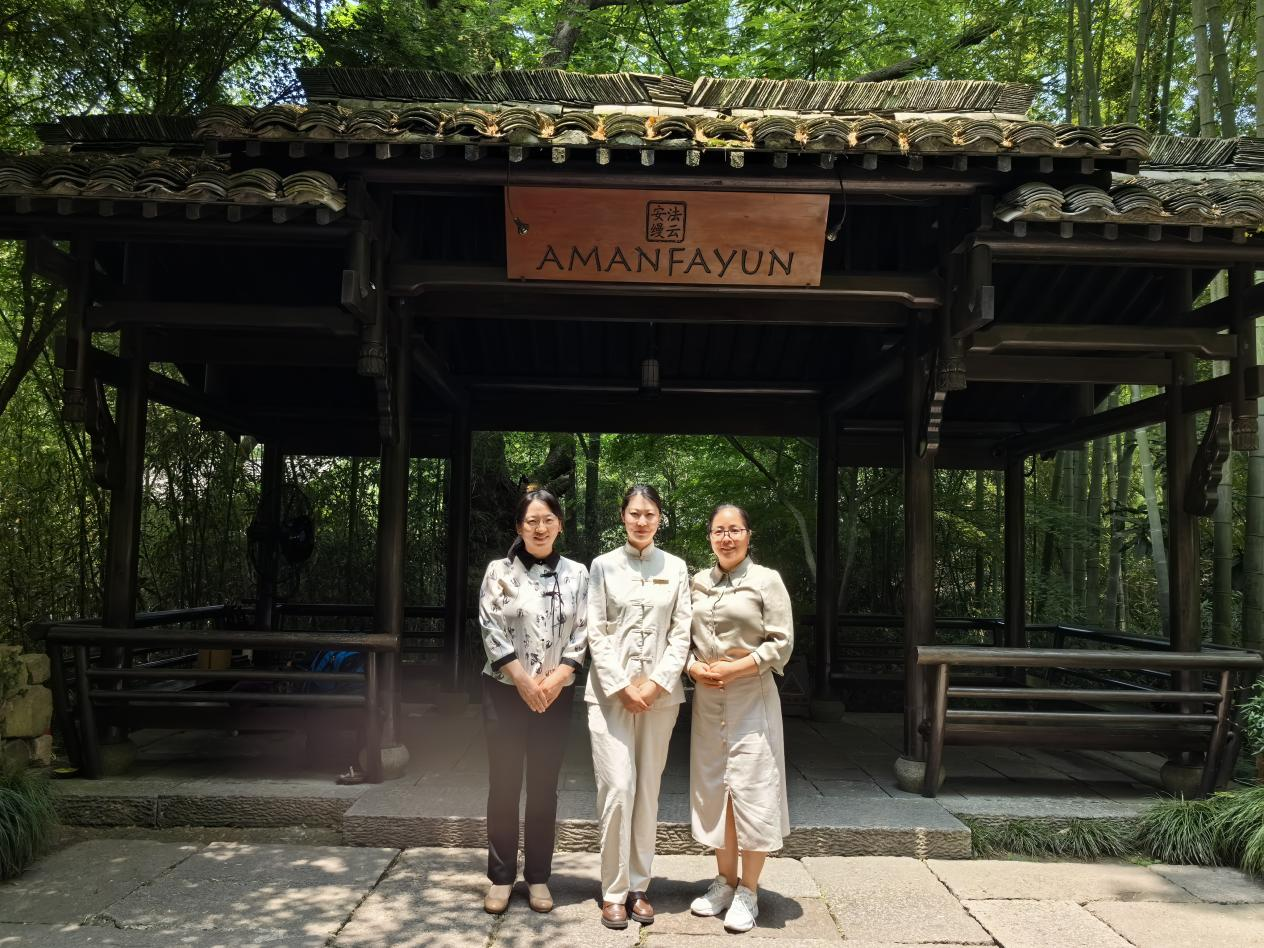30日上午,调研教师来到杭州法云安缦酒店。安缦是近年来最具特色的国际联号度假酒店品牌,目前在20个国家拥有35家酒店、度假村和住宅开发项目,其中15家位于联合国教科文组织保护地附近或内部。在中国区域一共有四家安缦酒店,其中杭州法云安缦坐落在杭州西子湖畔灵隐寺景区内,原址是一处名为“法云”的古村落,由安缦改造成为品牌落户中国的第二家度假酒店。团队教师在法云安缦人资总监王丽利的带领下参观了该酒店。随后双方针对度假型酒店人才培养、实习实训安排、就业平台搭建等问题进行了深入的探讨,为后期校企合作奠定了基础。