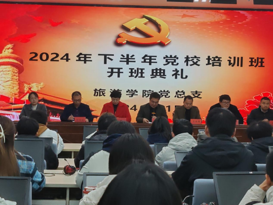 11月19日下午,旅游学院2024年下半年党校培训班开班典礼在实训楼5102隆重召开。旅游学院党总支书记邹新忠、院长王振伟、党总支副书记陈志冉、组织员张宾宾、学生党支部书记史晋、组织委员程露、宣传委员李峰及全体发展对象和入党积极分子参加了此次开班典礼。