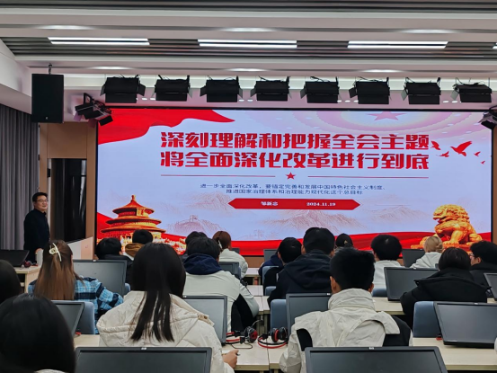 开班典礼结束后,党总支书记邹新忠以“深刻理解和把握全会主题 将全面深化改革进行到底”为主题为培训班学员讲了一堂生动的党课。通过对二十大以来党和国家事业取得的重大成就、全会的重大时代意义和深远历史影响、党将改革开放进行到底的坚定决心及全会《决定》提出的进一步全面深化改革重大举措等进行了深入细致的解读和讲解,主题鲜明、联系实际,让在场学员对党的二十届三中全会精神有了更深的认识。