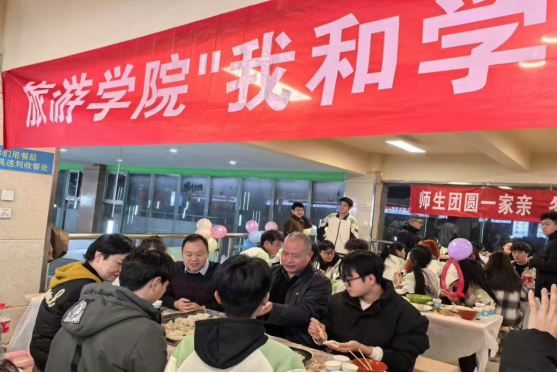 12月21日,旅游学院在餐厅二楼举办了一场温馨而有意义的“我和学生过冬至”包饺子活动。校党委书记周保平、校党委副书记、工会主席杨士恒依次来到活动现场,和旅游学院师生代表共度传统佳节。