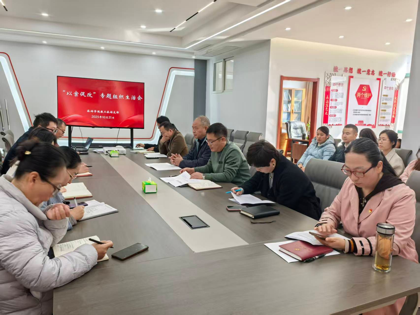 10月21日下午,旅游学院党总支教工旅游支部在SX5204会议室召开“以案促改”专题组织生活会。党委副书记、工会主席杨士恒以普通党员身份参加,旅游学院党总支书记邹新忠主持会议。
