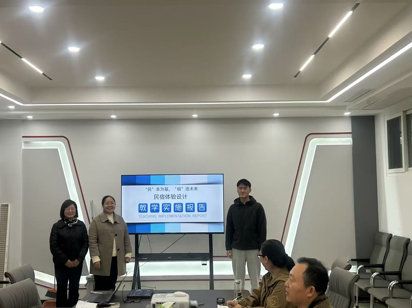 《研学旅行策划与管理》、《“民”本为基,“宿”造未来民宿体验设计》2个团队成员首先针对教学实施报告的主要内容和特色创新进行了详细汇报。参赛教师根据选取的教案进行无学生教学展示。教师通过生动的案例、精美的PPT、详实的内容呈现了一场精彩的课堂教学。