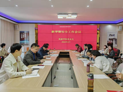 3月5日,旅游学院安全工作会议在实训楼5201召开,议由党总支书记邹新忠主持、院长王振伟、副院长徐永红、副书记陈志冉及全体辅导员参加。