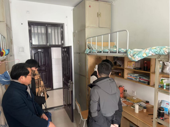为进一步加强学生安全管理,确保寒假期间的宿舍安全及学生的平安返乡,2024年12月31日上午,我院党委书记邹新忠带领学院领导班子成员及辅导员们深入学生宿舍,对宿舍的安全状况、卫生状况进行了全面细致的检查,对学生的返乡情况进行了全面掌握。
