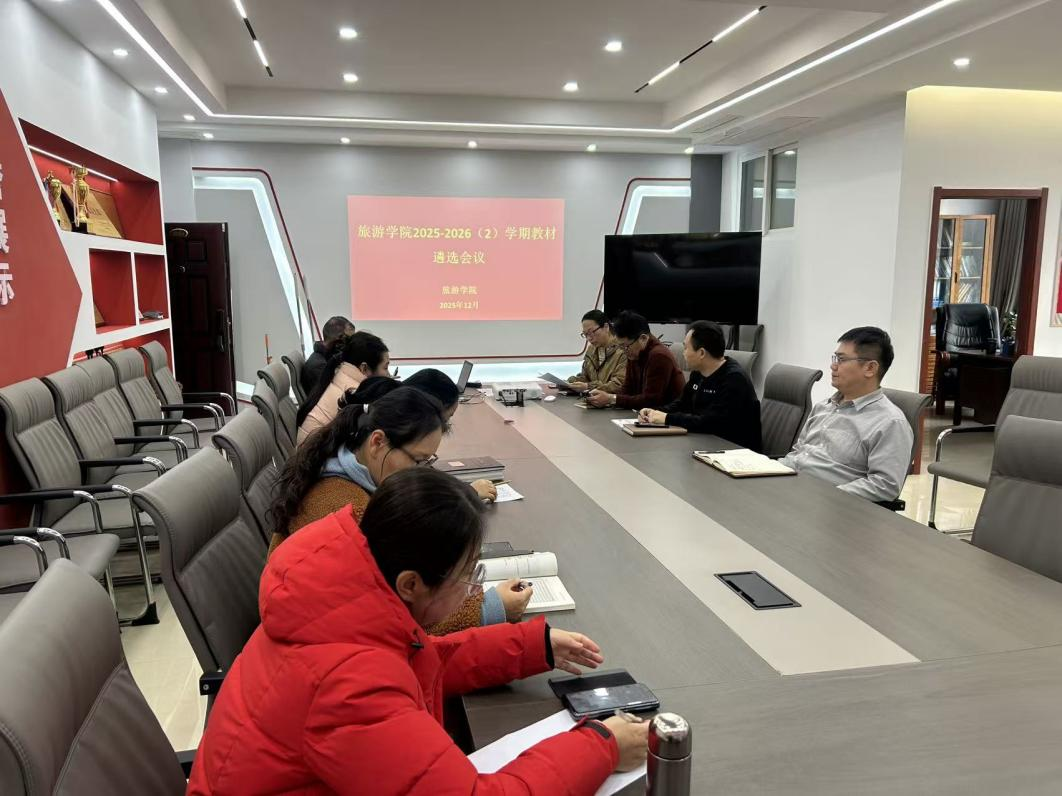 12月24日上午,旅游学院召开教材工作领导小组会议暨2025-2026学年度第二学期教材选用审议会议,教材工作领导小组全体成员参会,会议由学院党总支书记邹新忠主持。