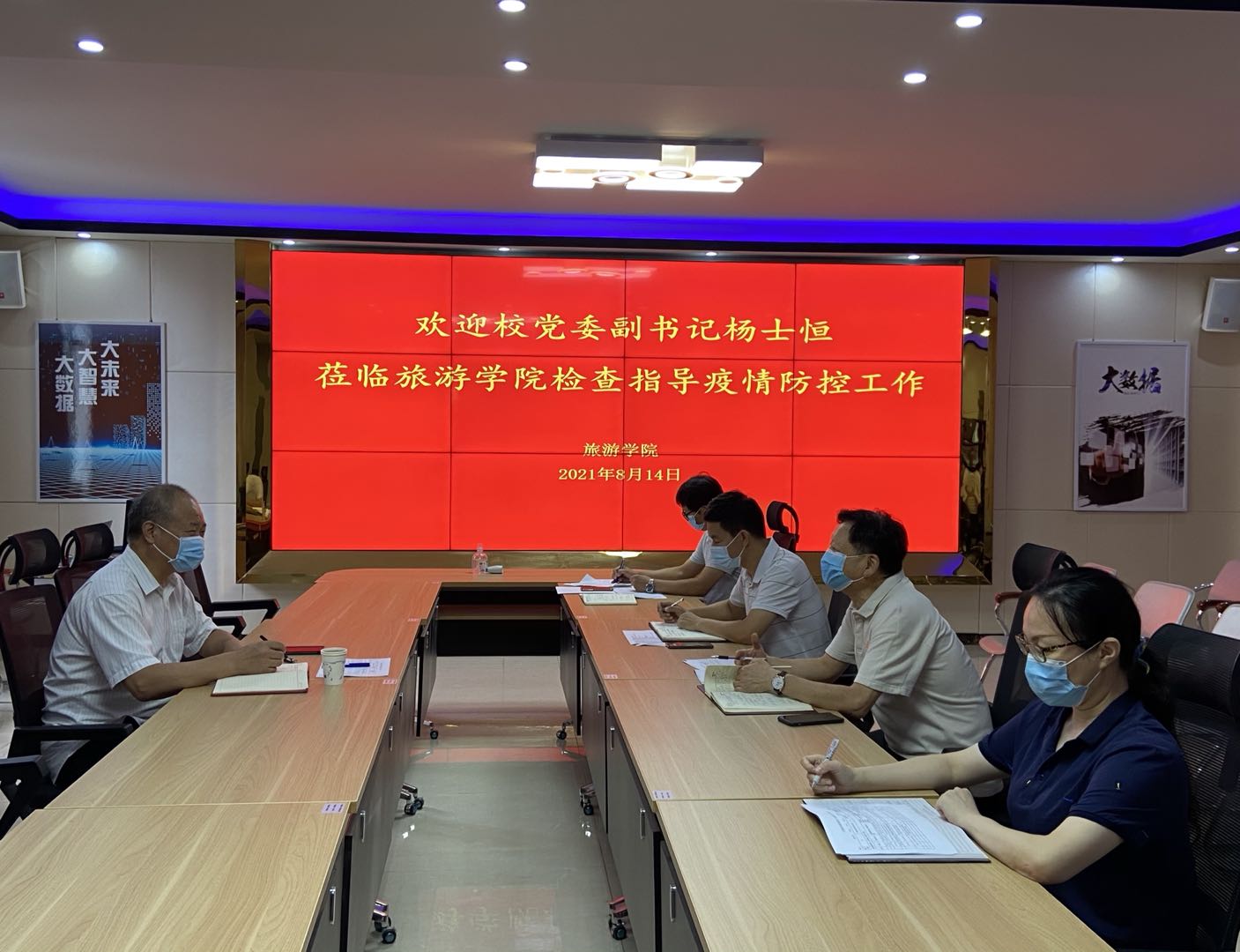 8月14日上午,校党委副书记杨士恒深入旅游学院检查指导疫情防控工作。学院班子成员刘岩、焦红强、徐永红、余楠,院办公室主任、实训中心主任相关教师参加会议,会议由刘岩书记主持。