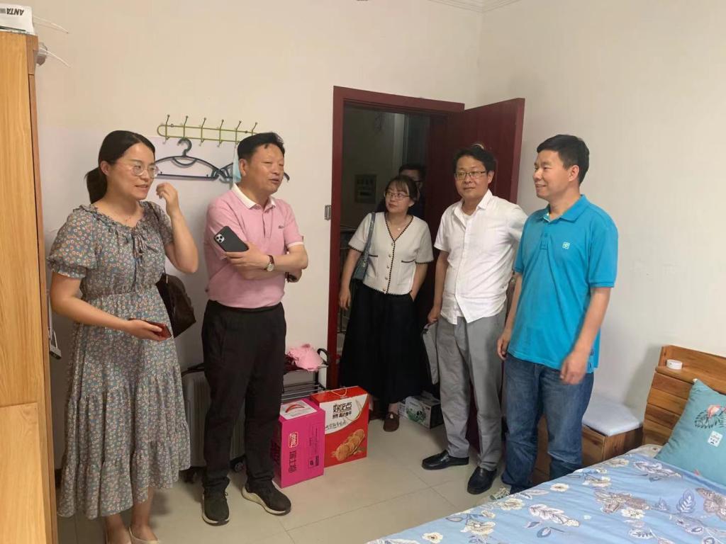 院领导一行深入了解新进教师的的住宿、饮食情况。期间,院领导与新进教师亲切交谈,仔细询问对新岗位的适应情况,让他们谈谈对工作环境的意见和建议,以及在日常生活中是否有其他需求。