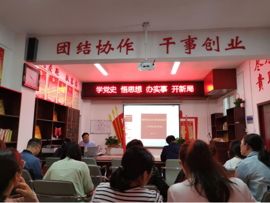 学院教工支部组织委员花菊香以“学好四史,牢记初心使命”为题,强调历史是最好的教科书,广大党员要重温党史、汲取营养、不断前行。