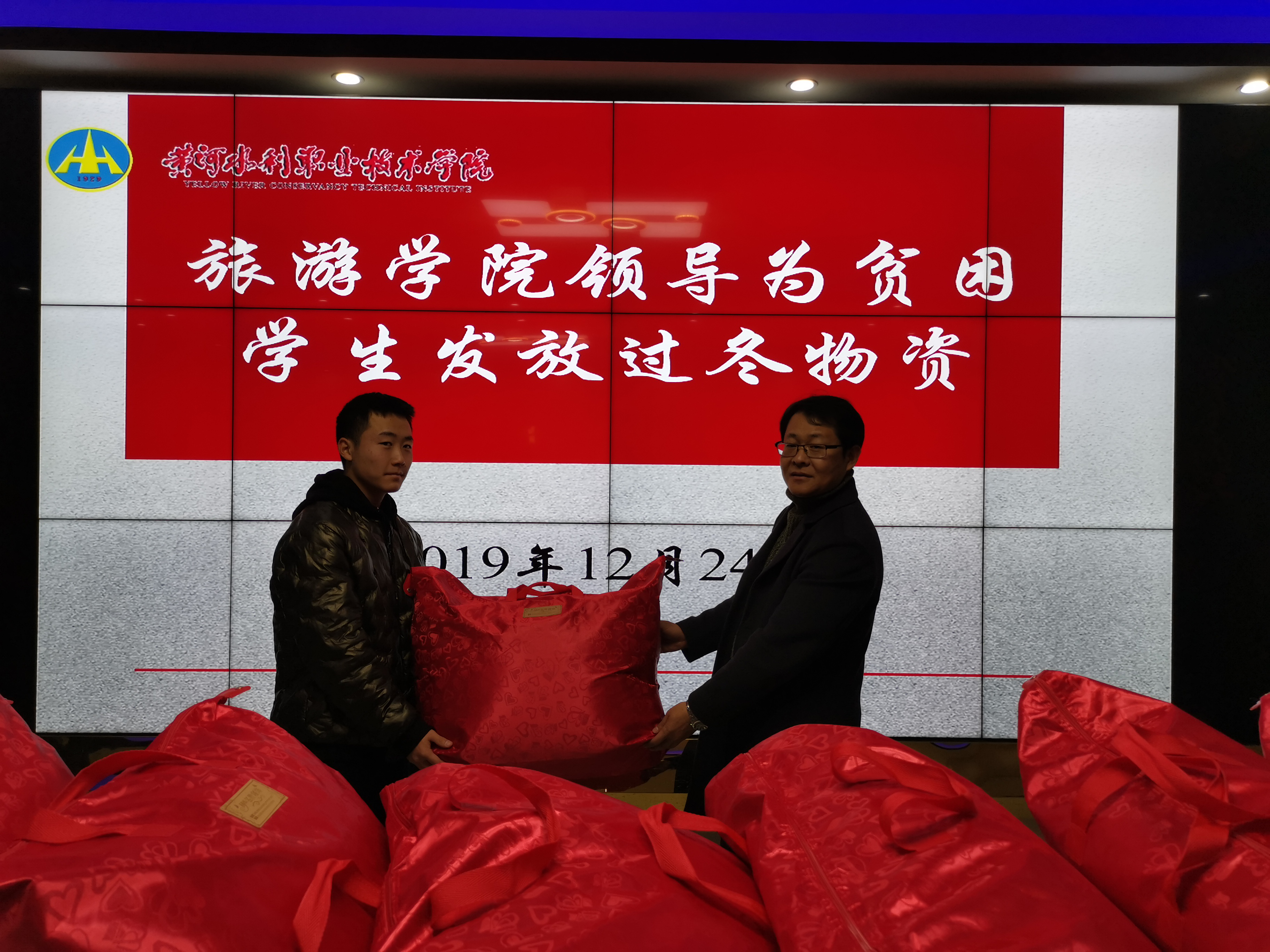 2019年12月24日下午,旅游学院实训楼5201召开了冬季资助家庭经济困难学生棉被发放大会,旅游学院党总支副书记徐永红、分团委书记史晋、2019级辅导员刘梦丽、王伊晓、资助专员李峰等老师为旅游学院家境贫寒、品学兼优的学生发放过冬物资