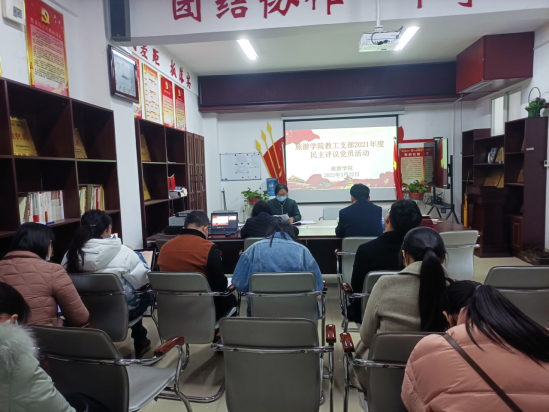 会上,王进代表教工支部向大会做了2021年度支部工作汇报,认真查找过去一年中支部工作存在的问题并列出改进清单,明确改进措施。随后,教工支部成员和党员教师结合自身工作情况,对照新时代合格党员标准、对照入党誓言、对照革命先辈和先进典型,认真查摆、深入剖析,从思想、作风、工作和生活等多方面对自己进行深刻总结和反思,认真开展批评与自我批评。