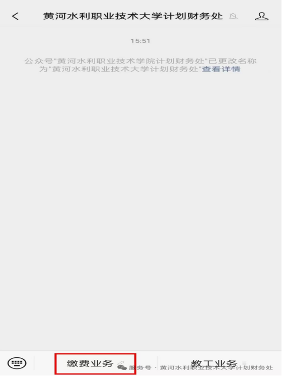 学生银行卡维护操作步骤 发布时间:2025-11-15 作者:谷庆玺 浏览次数: 责任编辑:刘振威 学生银行卡维护操作步骤 黄河水利职业技术大学计划财务处 1.微信搜索黄河水利职业技术大学计划财务处公众号,关注该公众号; 2.进入公众号,点击缴费业务; 3.点击证件号,使用身份证号、姓名进行登录; 4.点击左上角菜单——我的,进入到银行卡维护页面 5.点击银行卡维护,输入自己的银行卡号和开户行,点击修改。 (注意:1、输入的银行卡需选择学生自己名下的银行卡;2、银行卡开户行需选择中国农业银行或中国银行,以便于学生在校期间评定的奖助学金等委托银行代发。) 附件【学生银行卡维护操作步骤.docx】已下载次 下一篇: 各学院学生欠费情况查询步骤